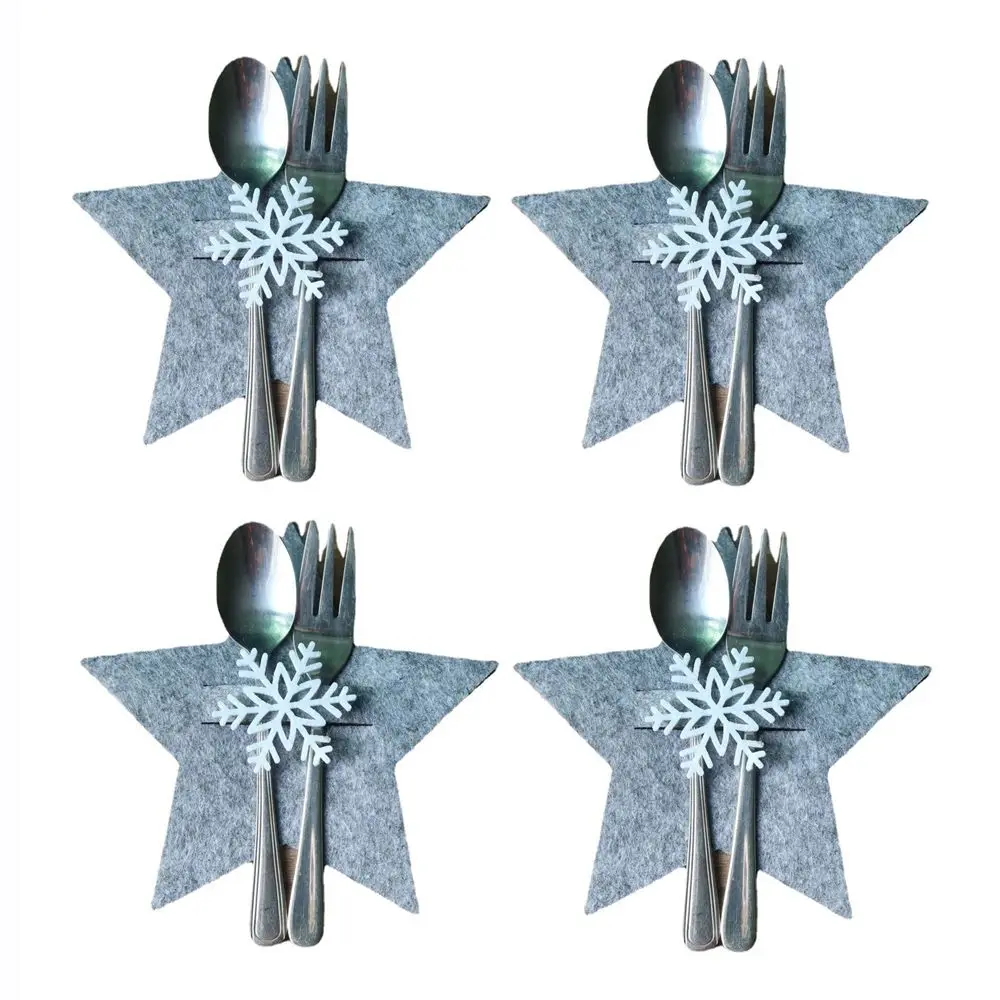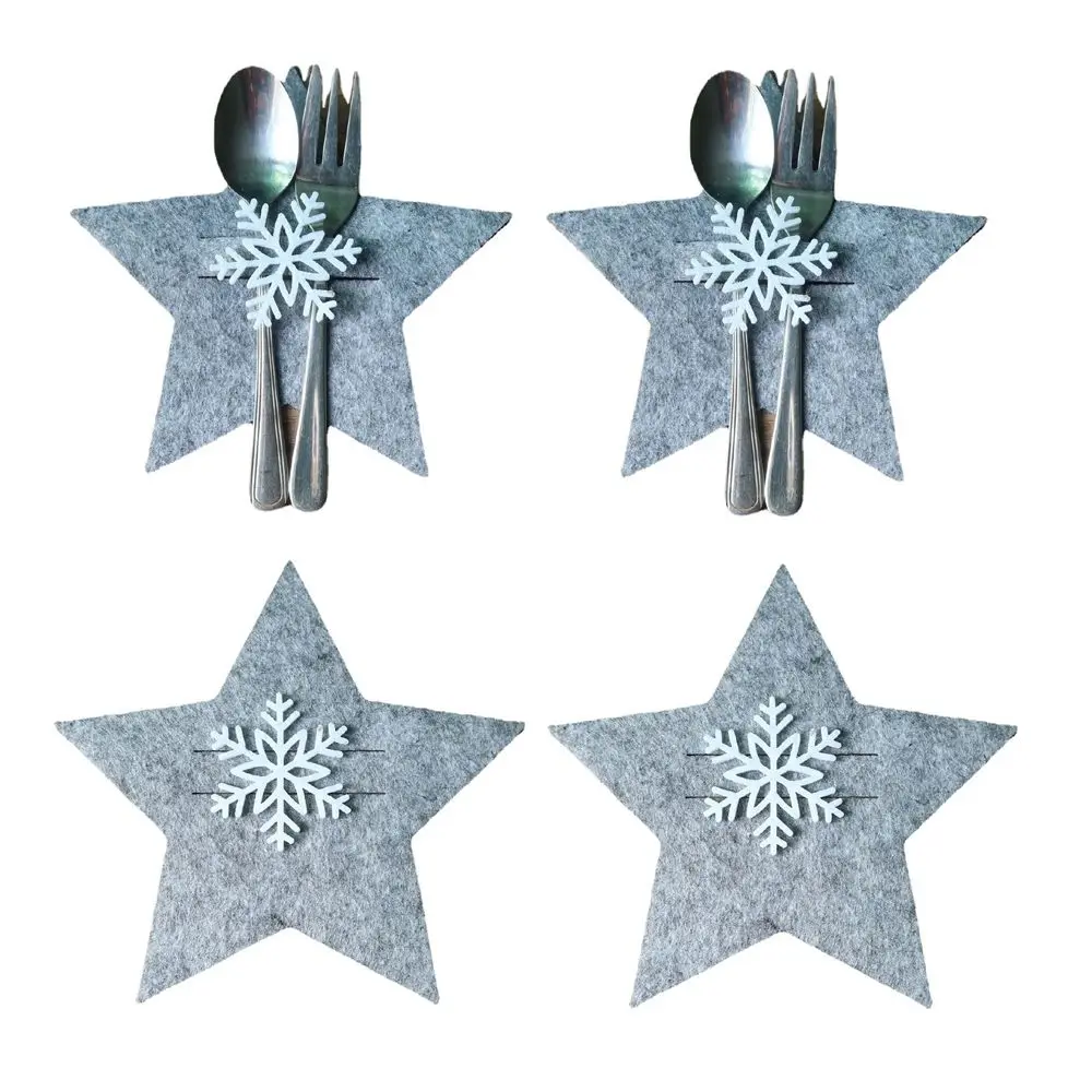 (4PCS/44 Styles) Christmas Table Decor for Knife and Fork Holder Cutlery Bag