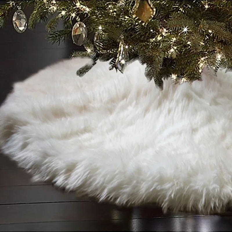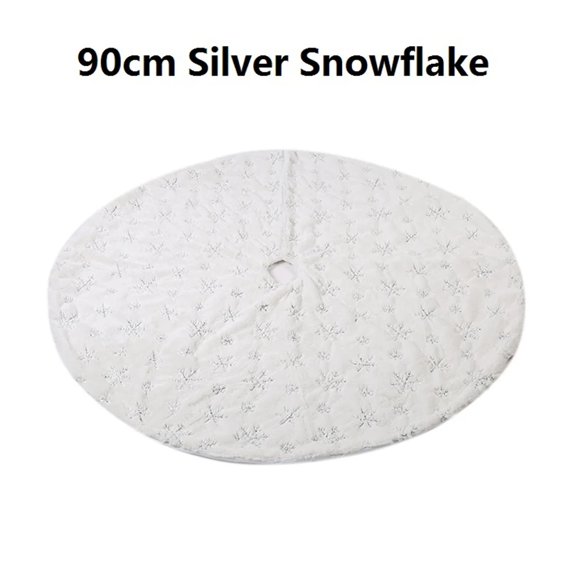 78/90/122cm Christmas Tree Skirt Faux Fur Carpet Snowflake White Plush Mat For Home Xmas Tree New Year Decor Noel Apron Ornament