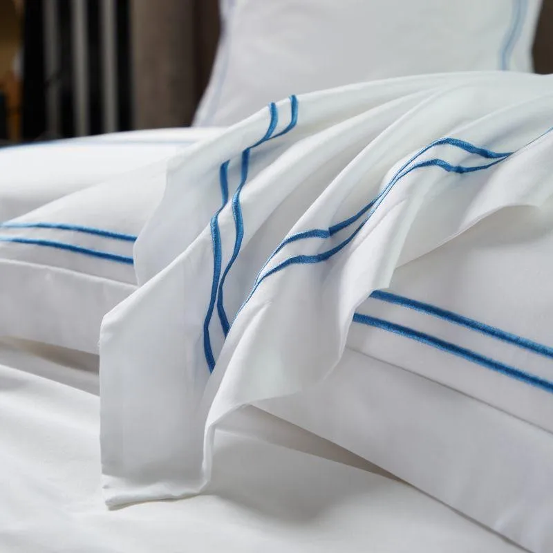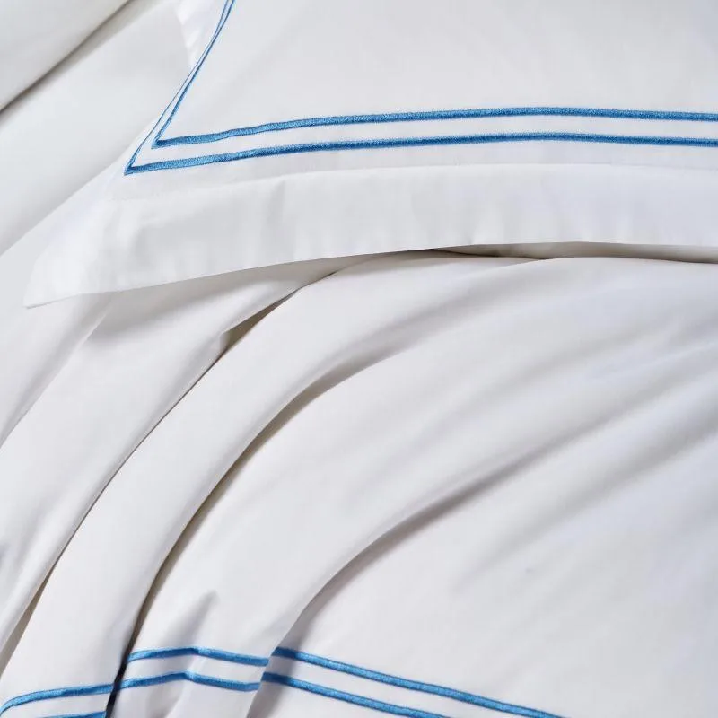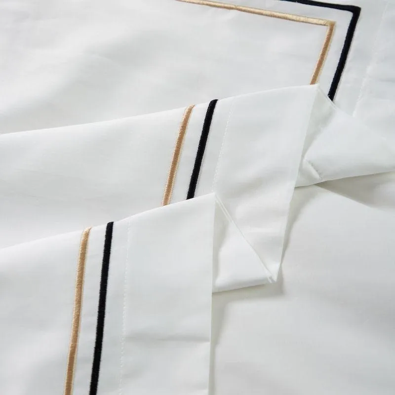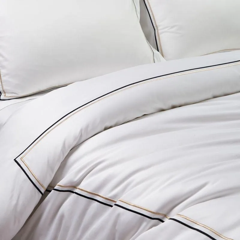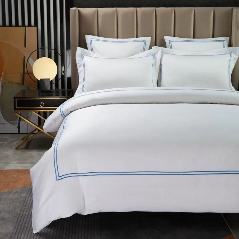(4pcs/Set) SANTORINI-Bedding Sets Hotel Collection Indigo Champagne Frame Embroidery with Zipper Closure Soft Easy-Wash