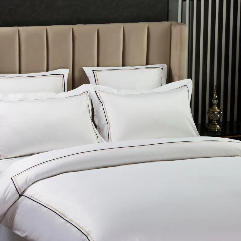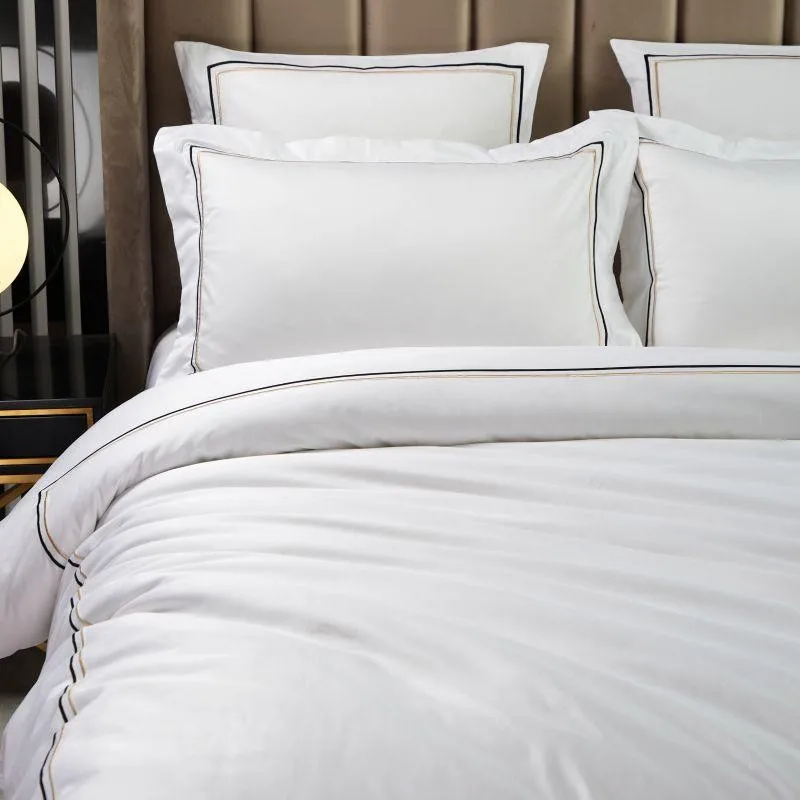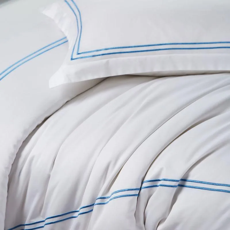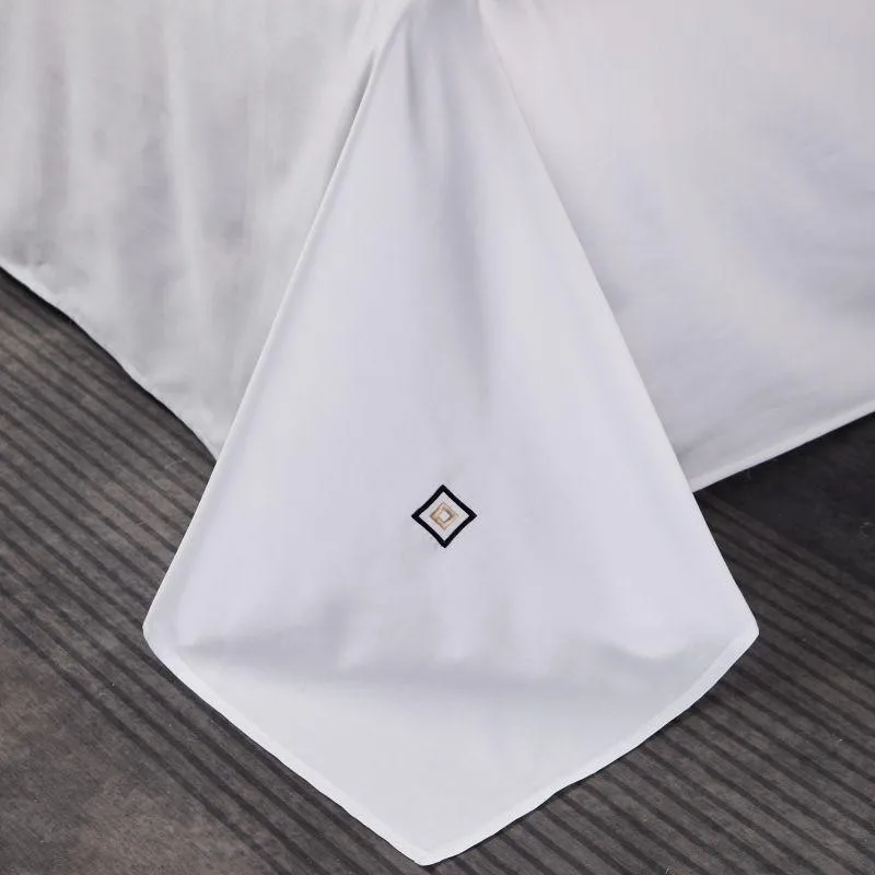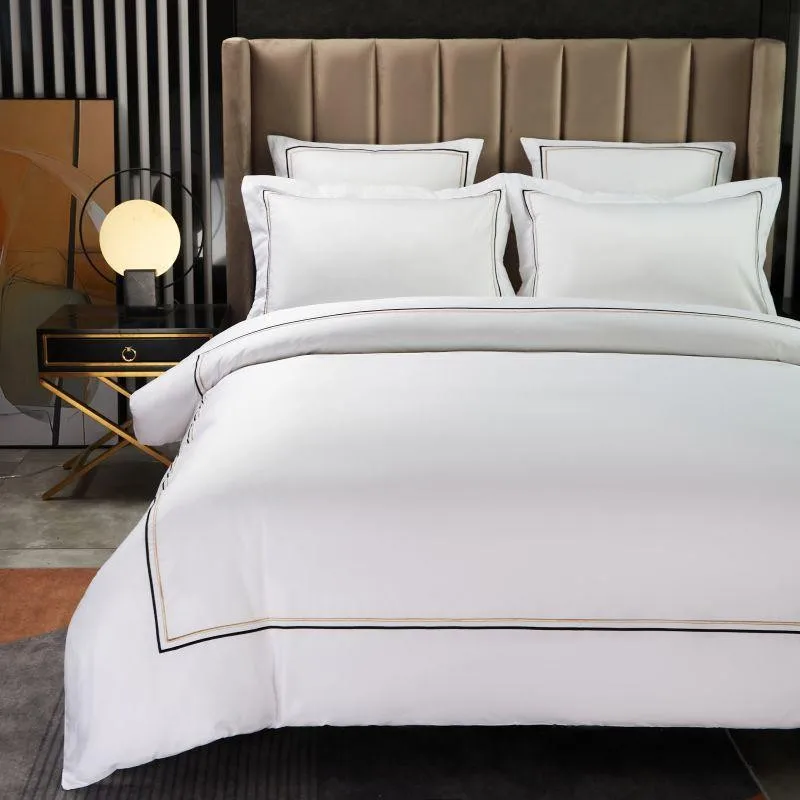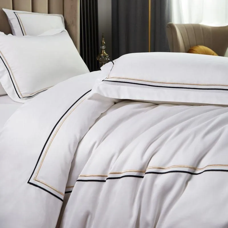 (4pcs/Set) SANTORINI-Bedding Sets Hotel Collection Indigo Champagne Frame Embroidery with Zipper Closure Soft Easy-Wash