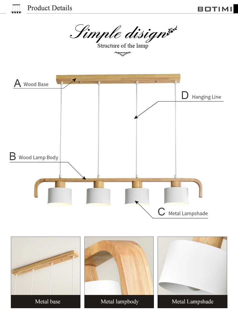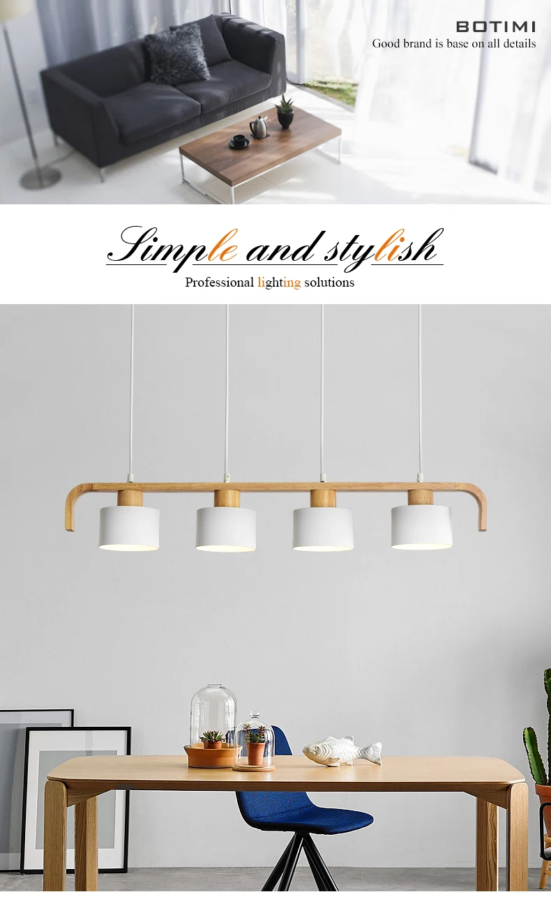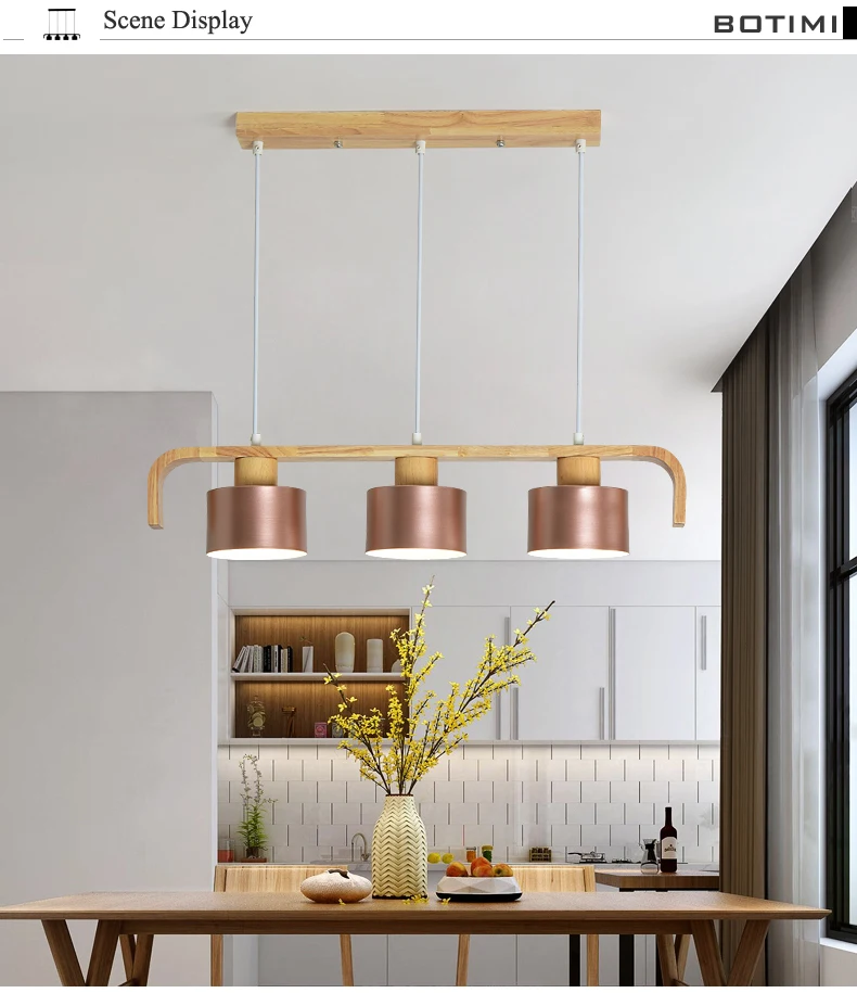 BOTIMI Modern LED Pendant Lights With Metal Lampshade For Dining Wooden Hanging Lamp E27 Wood Kitchen Luminaire