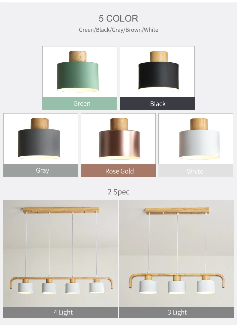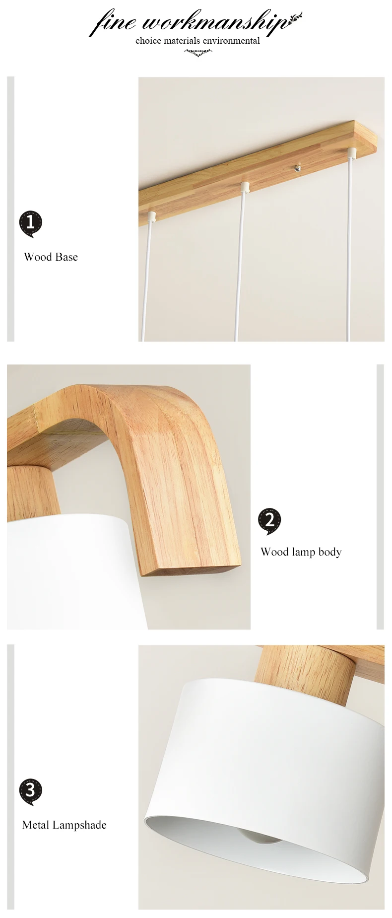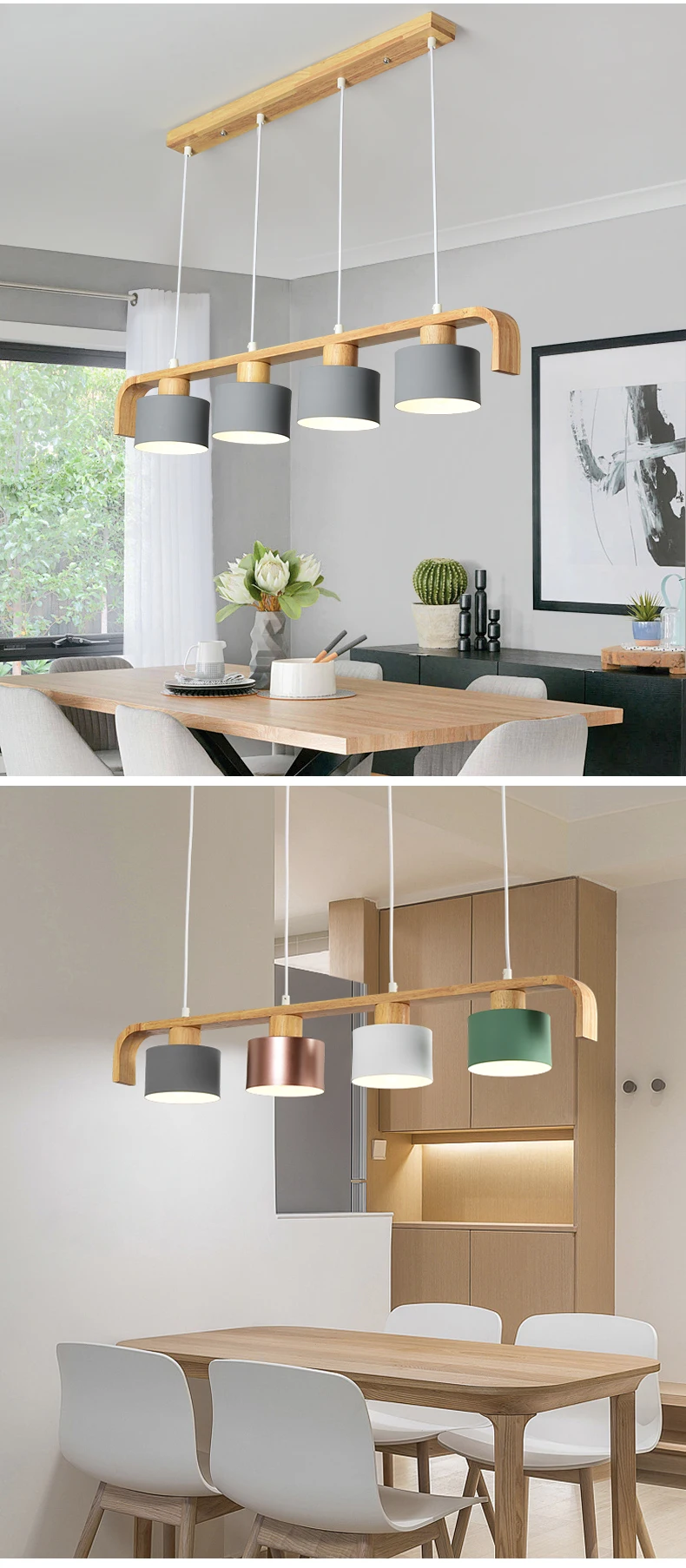 Modern LED Pendant Light For Dining Wooden Hanging Lamp E27 Wood Kitchen Luminaire