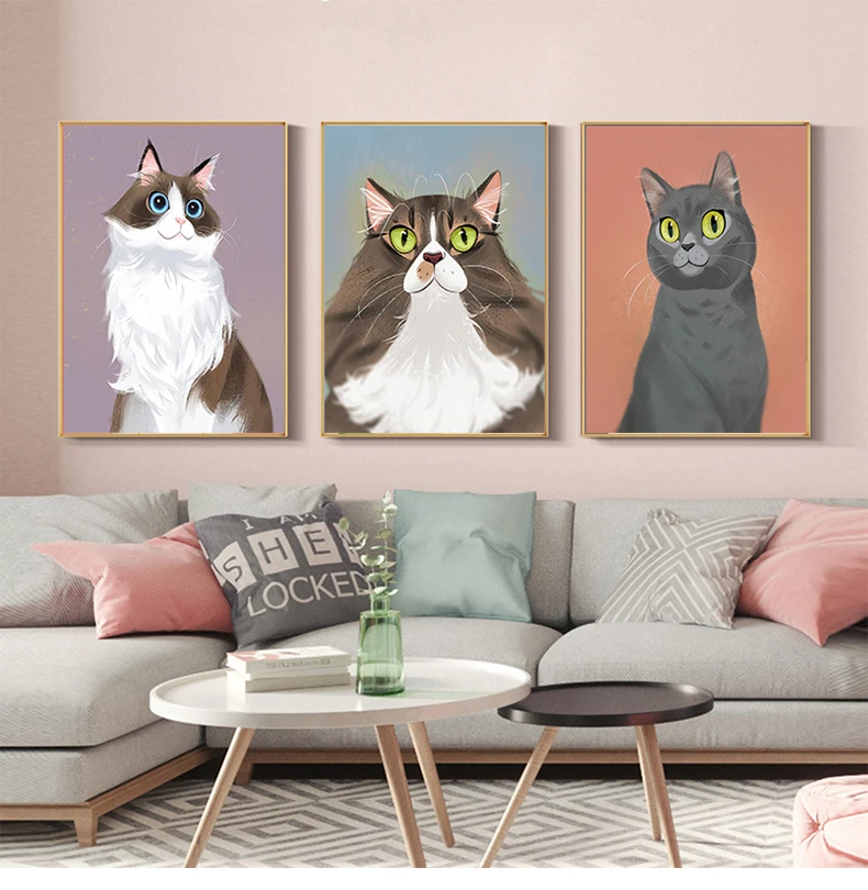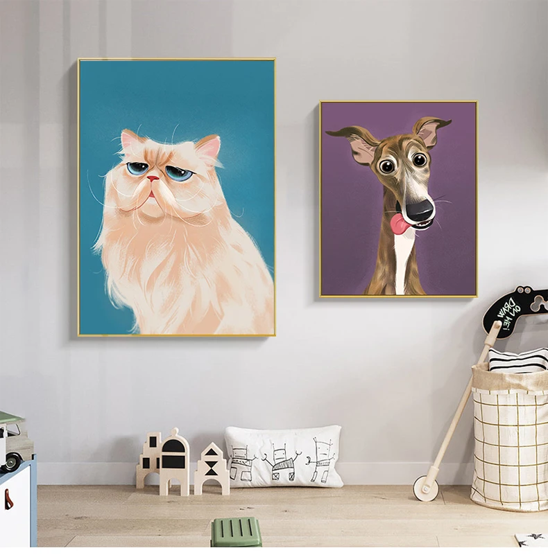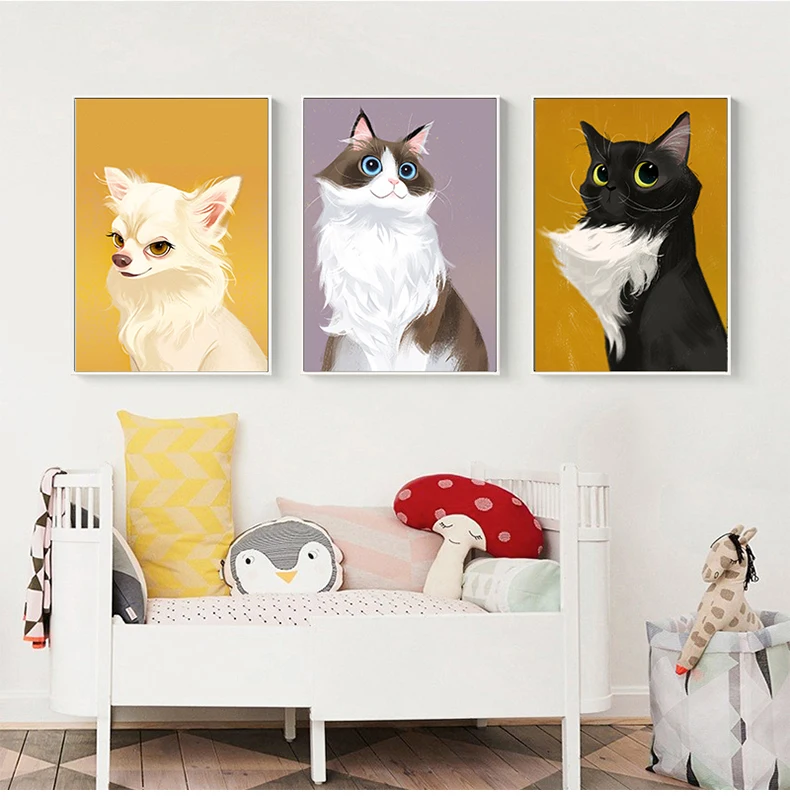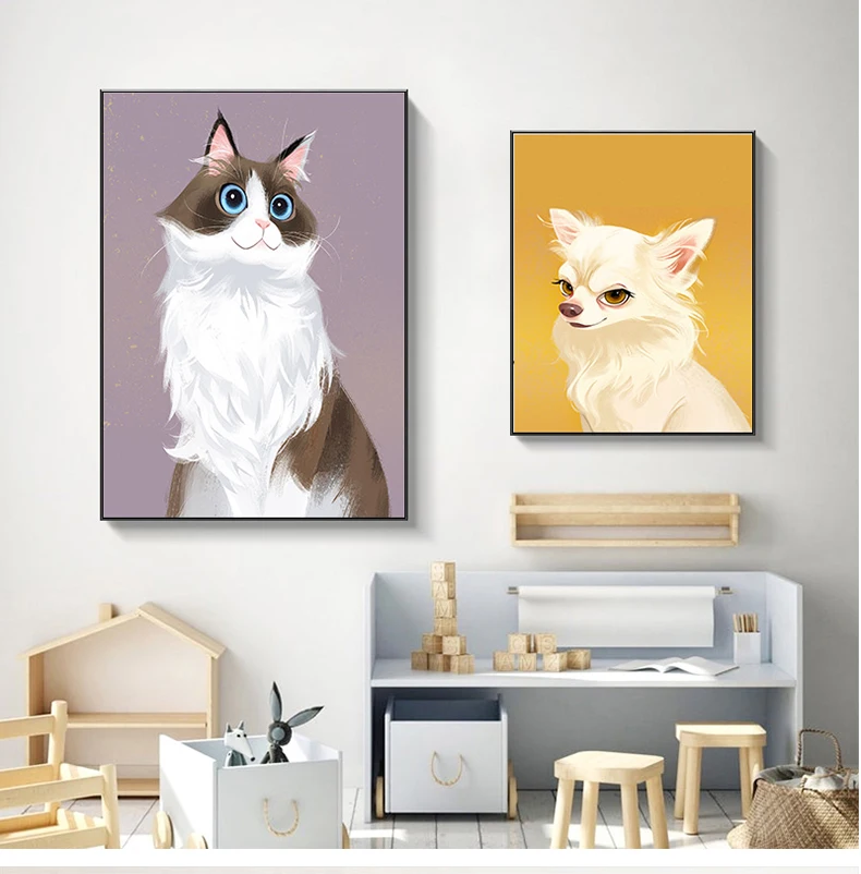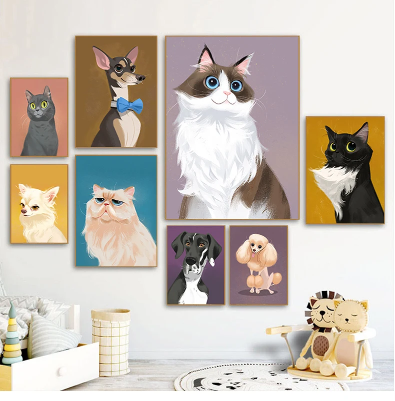 Cartoon Pet Dog Cat Poster Animals Posters Canvas Painting Wall Art Pictures For Living Room Nordic Girl Boy Kids Room Decor