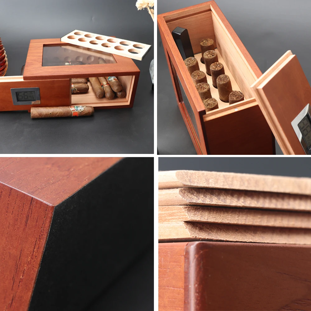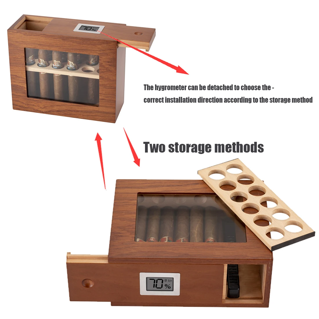 • ★Digital hygrometer and humidification bar ►Clear, this is the most accurate way to monitor and ensure adequate flavoring of the humidor. Equipped with a special humidification strip, the humidification system can make your relative humidity within the range of 65% to 70% perfect deployment.