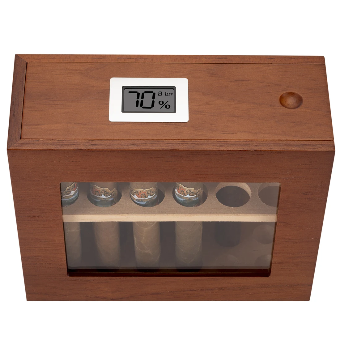 Portable Cigar Cabinet Fit (12-25 Cigars) Storage Humidor W/ Hygrometer Humidifier Glass Window Box