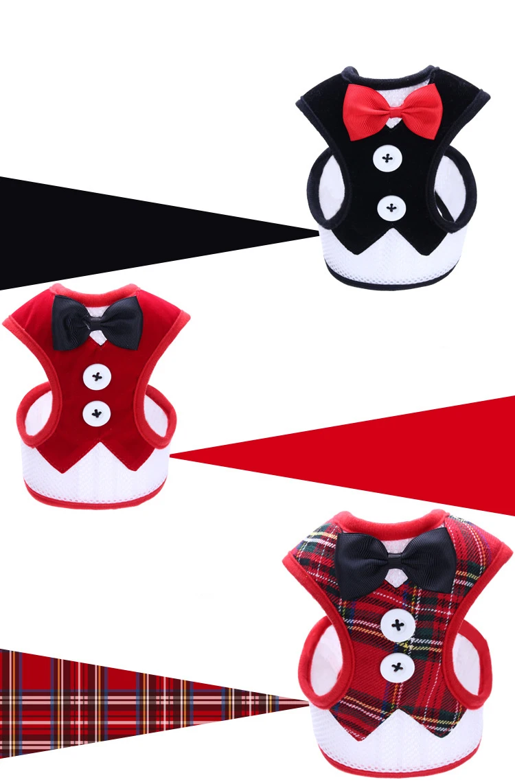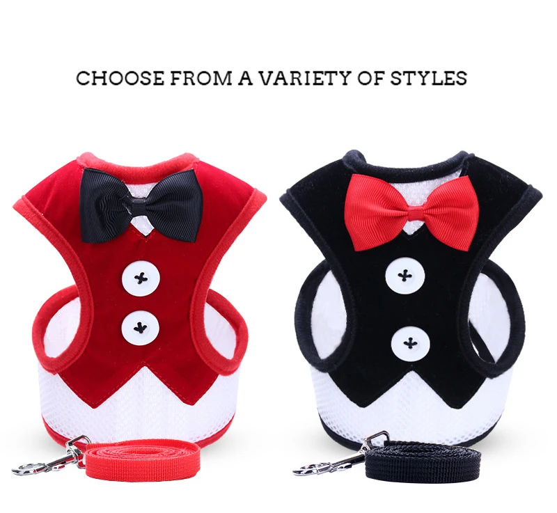 Elegant Bowtie Dog Harness Vest With Leash Adjustable Cat Harness Leash Set Cute Bow Knot Tuxedo Suit For Cats Kitten Puppy