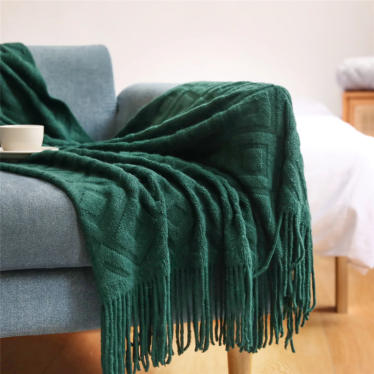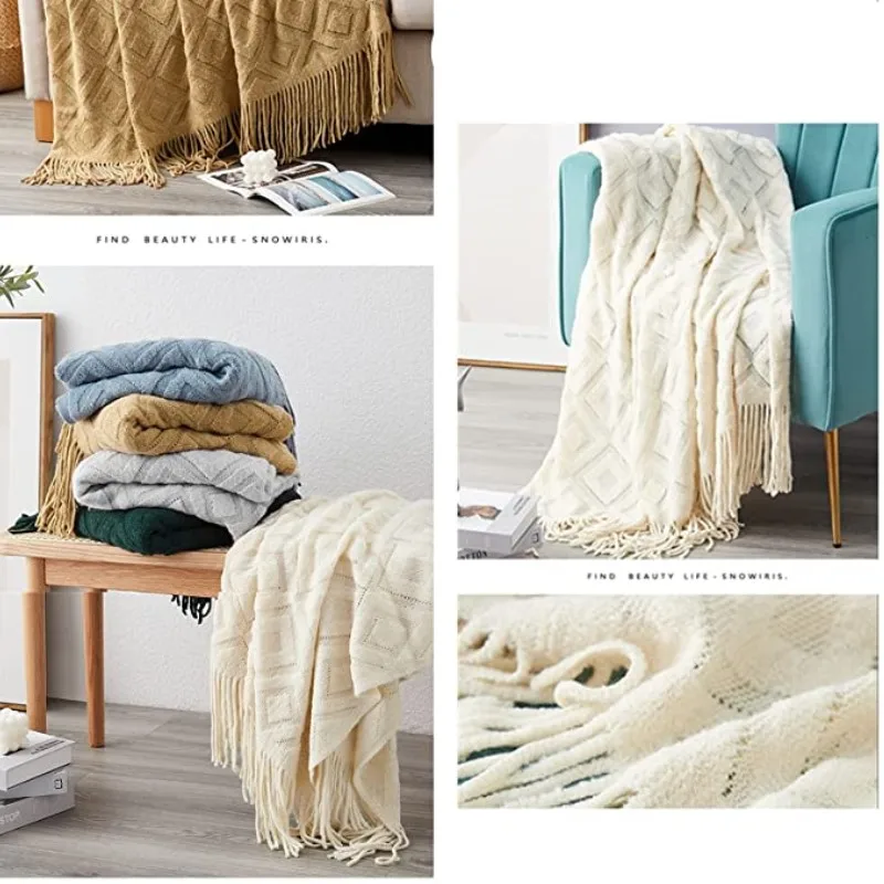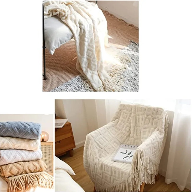LONNA-Tassel Knitted Woven Plaid Blanket Throw Nordic Blanket Home Decoration Sofa Bed