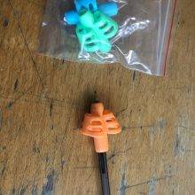 I've been experimenting with different pencils and grips for years- chunky pencils, triangle-shaped crayons, short and stubby markers and colored pencils, special triangle-shaped pencil grips, grips with indents and bumps on them to promote better finger posture- anything that forces him to use some type of pinch in his grip instead of holding it in his fist. Nothing has stuck. He loves these grips, though!
