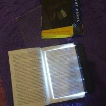 I like how it makes the page glow instead of having a hanging light above your book which is more noticeable in a room you wish to keep dark where others might be sleeping. A couple of things I was curious about... First, off I thought I might be able to place the panel behind the page I was reading so that it would glow thru essentially, but that did not work the best. You really need to place the panel ON TOP of the page you’re reading.