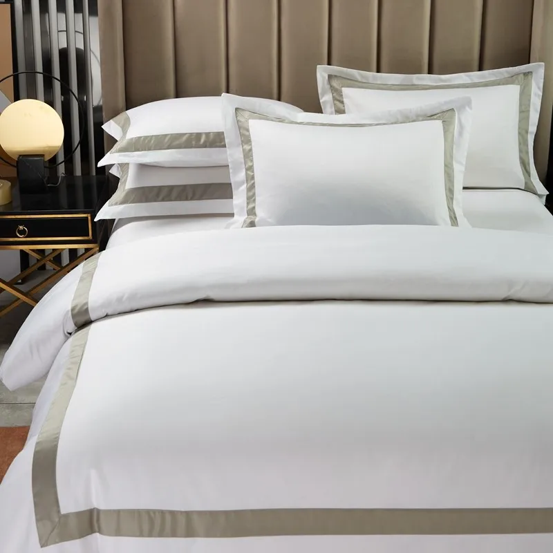 (4pcs/Set) IPANEMA-White Bedding Set Frame 100% Cotton (Duvet Cover, Pillowcases, Sheet) Soft Easy-Wash