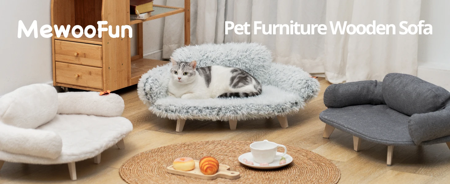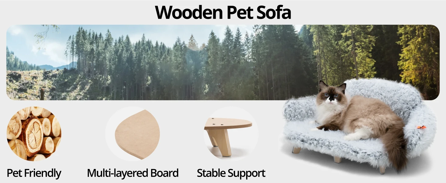【Keep Your Furry Friend Cozy】Elevate your pet’s comfort with our Cat Bed featuring a Removable Washable Cover. Perfect for Cats & Small to Medium Dogs, this Wooden Pet Sofa adds a touch of modern elegance to your home.