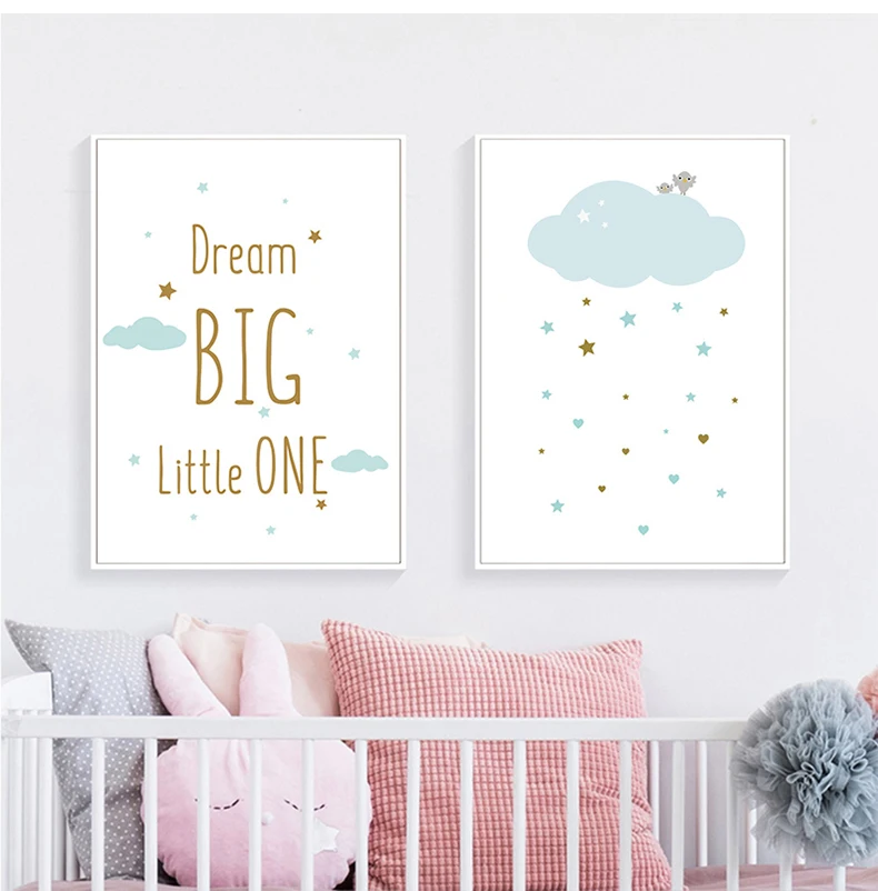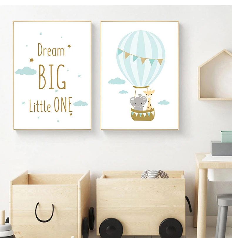 Nordic Elephant Nursery Wall Art Print Blue Cloud Quotes Canvas Painting Cartoon PostersAnd Prints Wall Pictures Baby Room Decor
