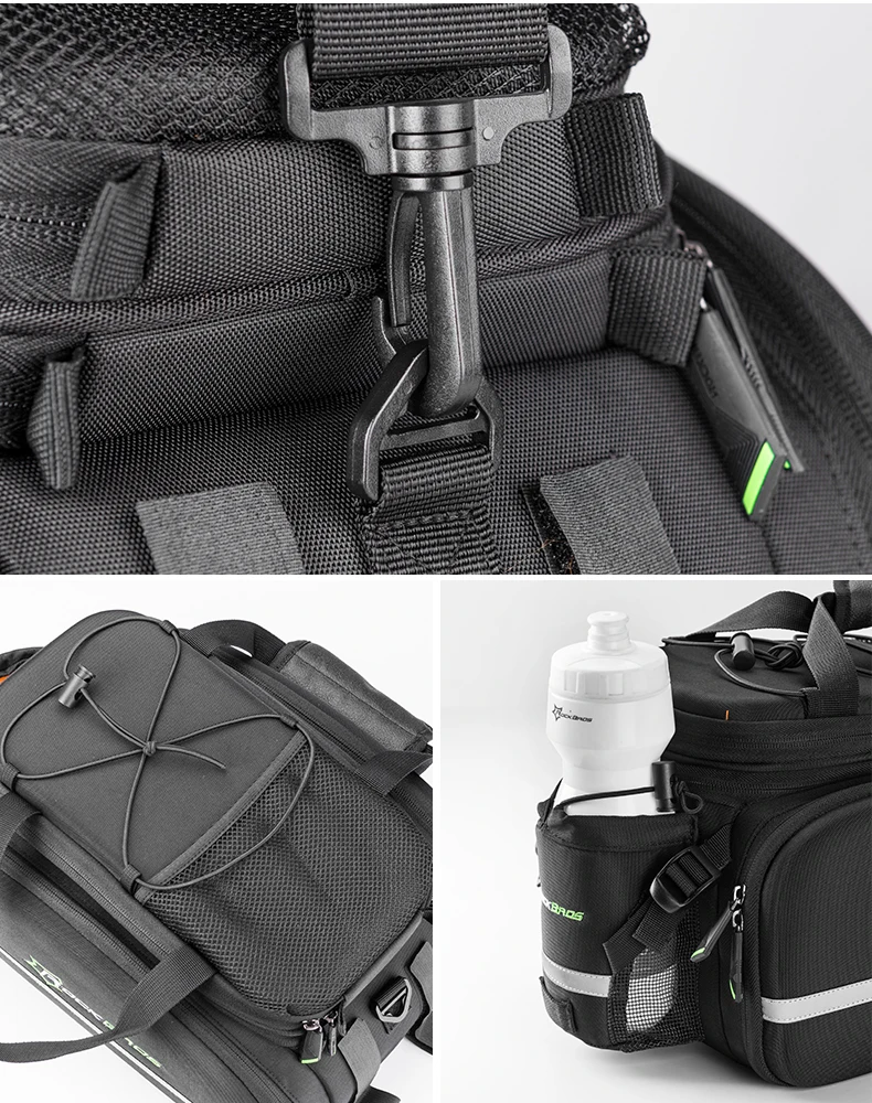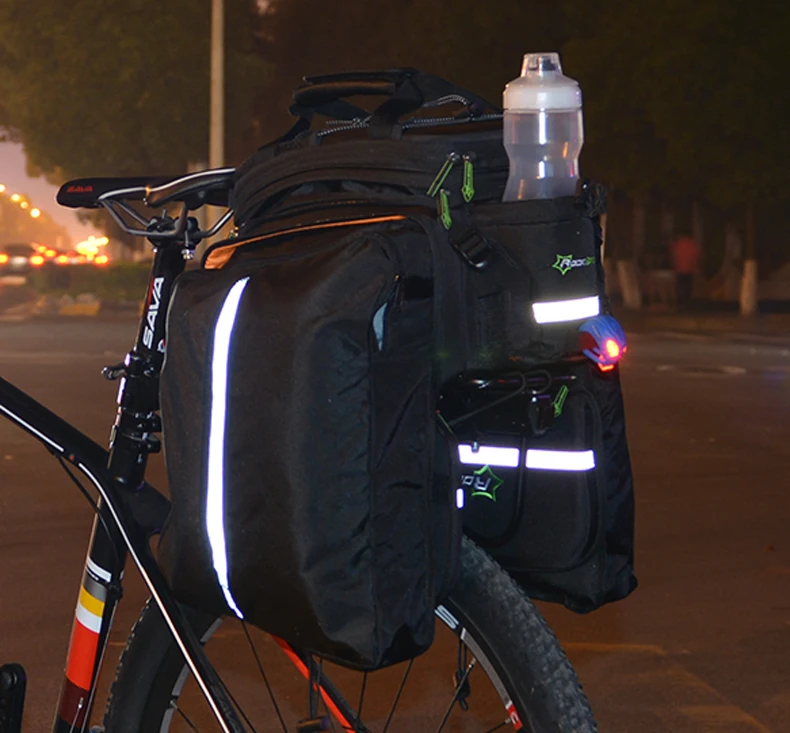 Adjust opening drawstring water bottle pocket,Reflective strips Can extend top bags,extendible and foldable bilateral side bags