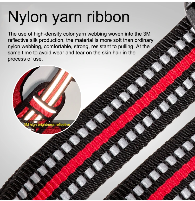 2.High density nylon webbing with 3M reflective improve visibility at night.Dog harness