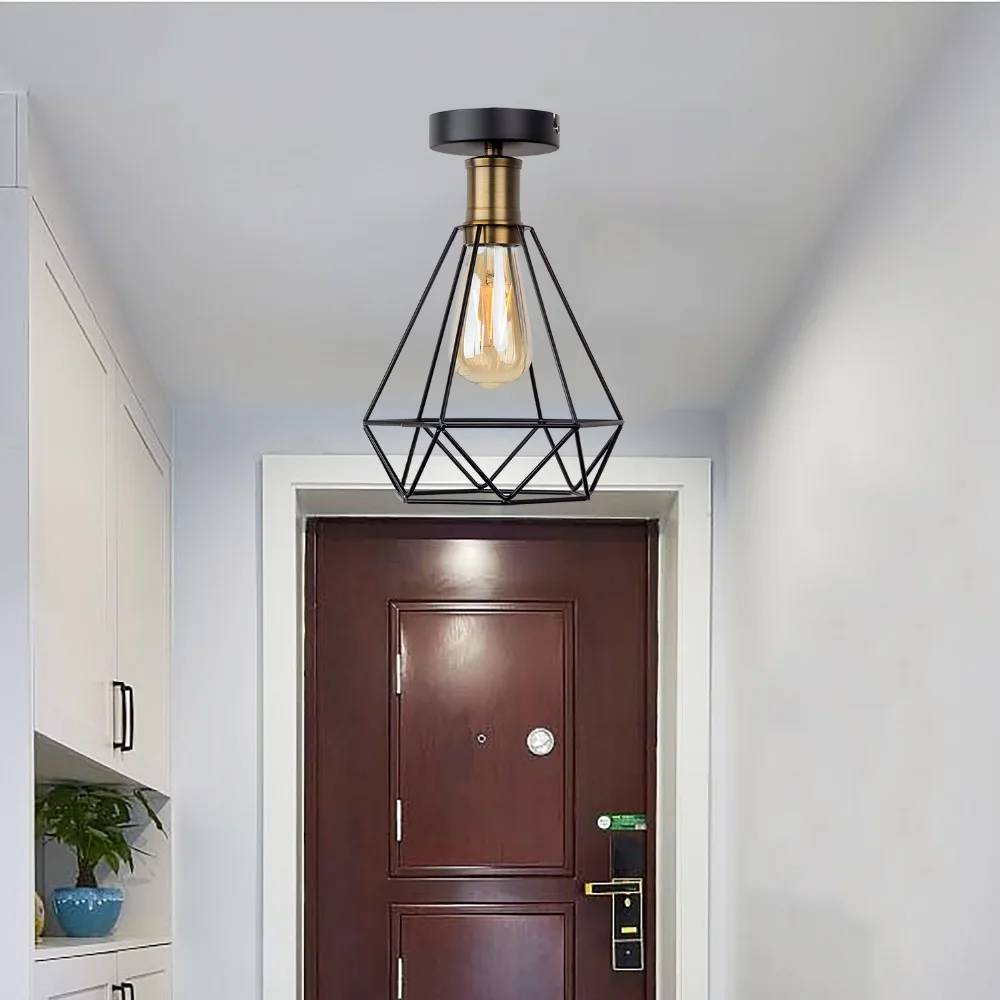 Ceiling Light Vintage Iron cage LED Shade Industrial Modern Nordic Home Living Room Decor