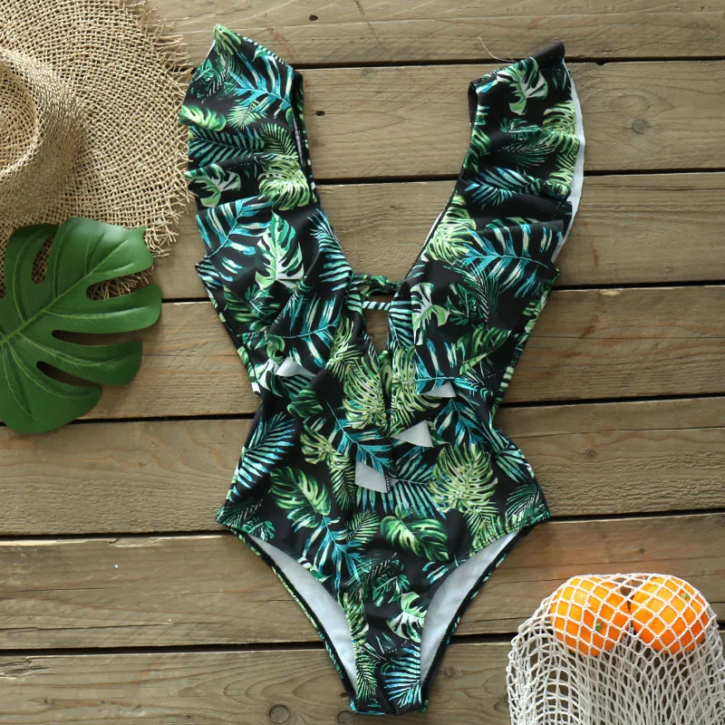 Women’s Ruffle Deep-V Swimsuit
