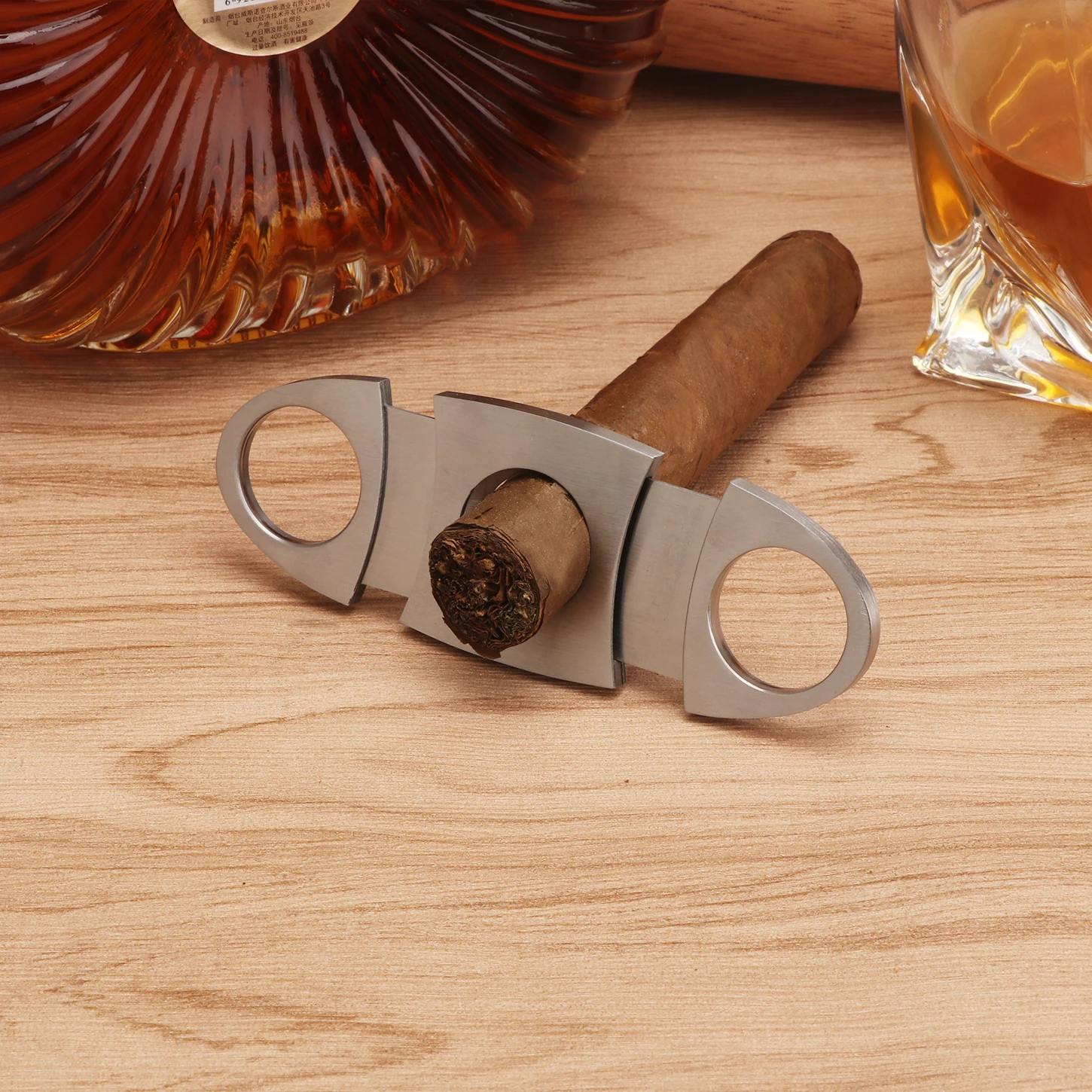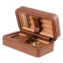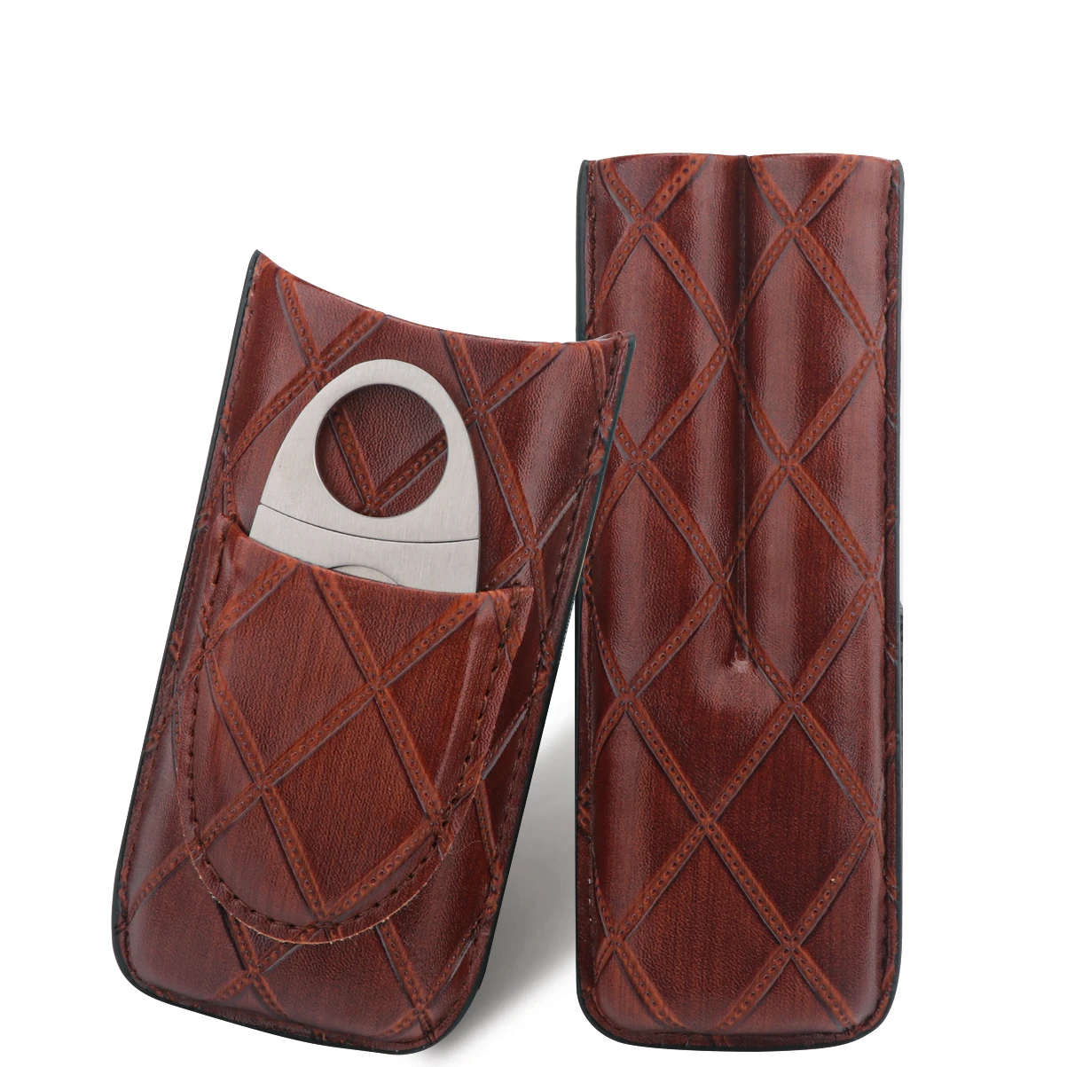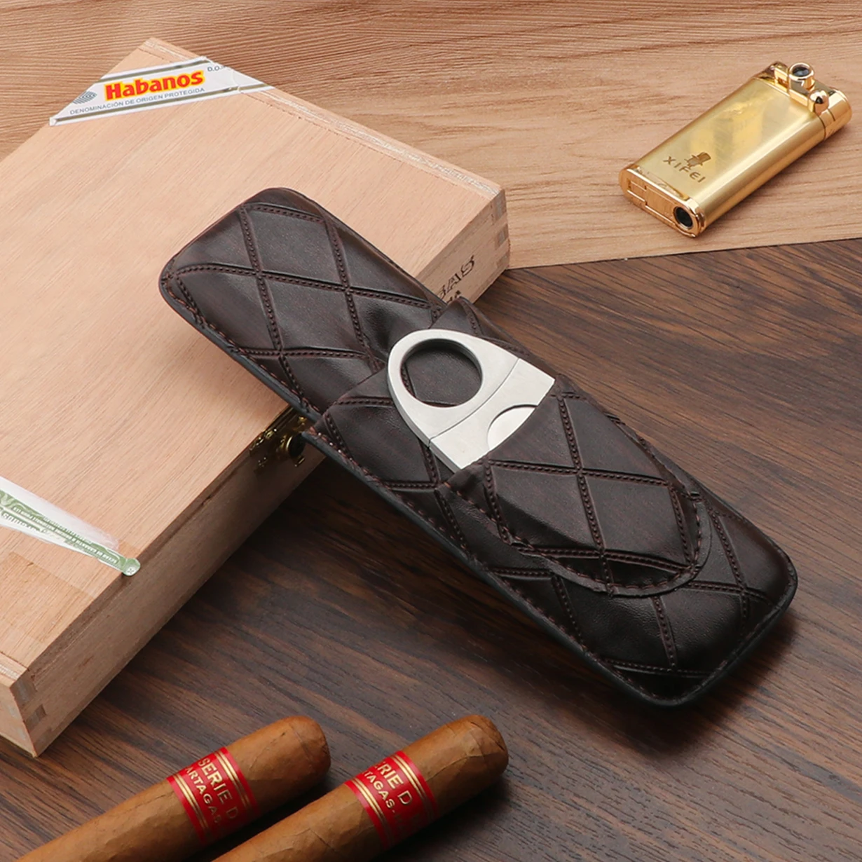Xifei PU 2 Slots Cigar Case Set Portable Humidor Box With Stainless Steel Cutter Travel Smoking Cigarette Storage Accessories Coffee/Brown