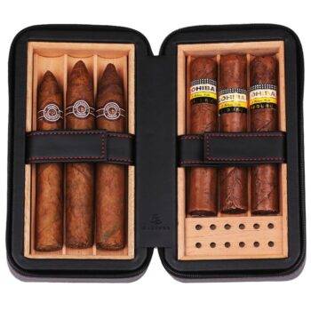 (2 Slots) Leather Cigar Case Set Portable Humidor Box W/ Stainless Steel Cutter Travel