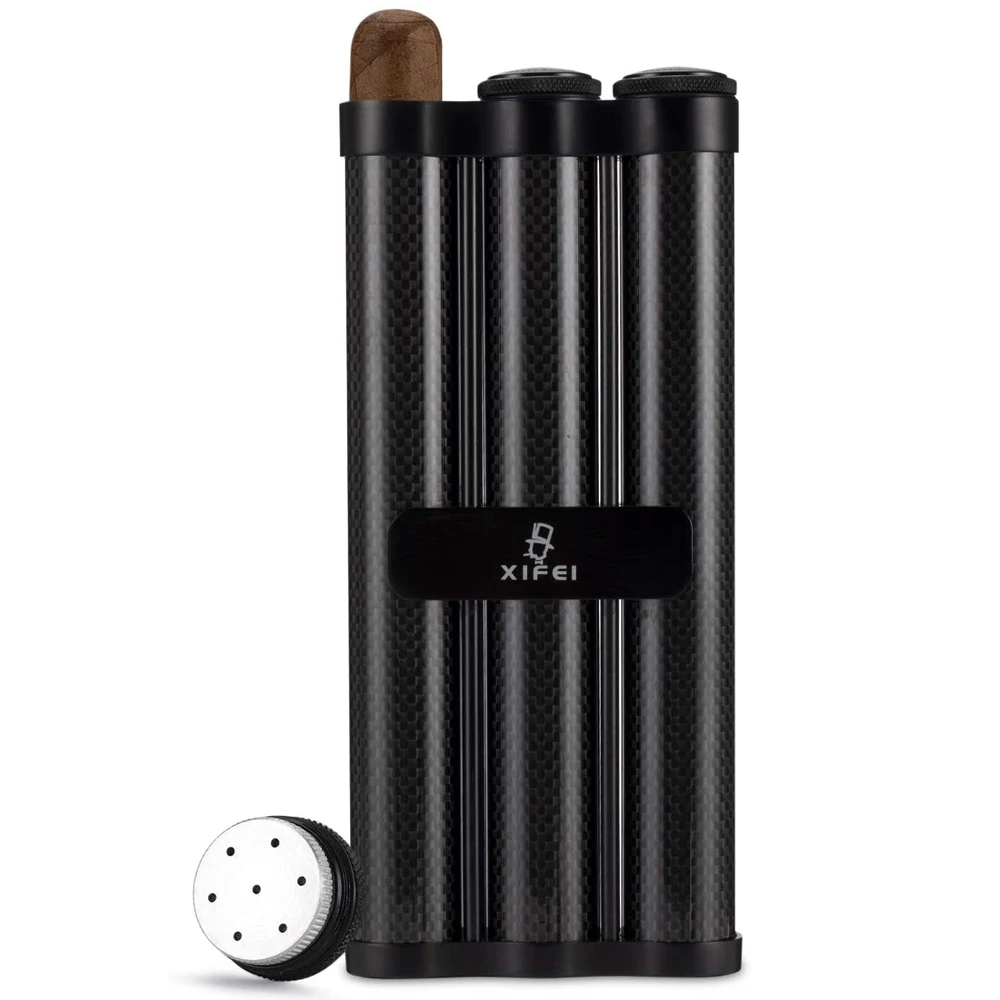 • UNIQUE DESIGN: Genuine Carbon Fiber, Aluminum Alloy, strong structure, light weight, easy to carry. Built-in humidifier to maintain the humidity required by the cigar. Convenient size, easy to carry with your cigars when traveling