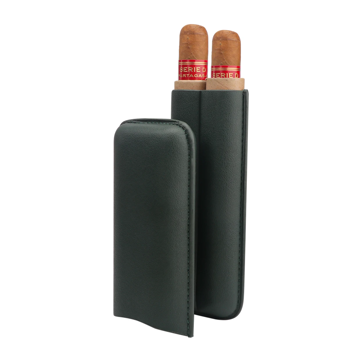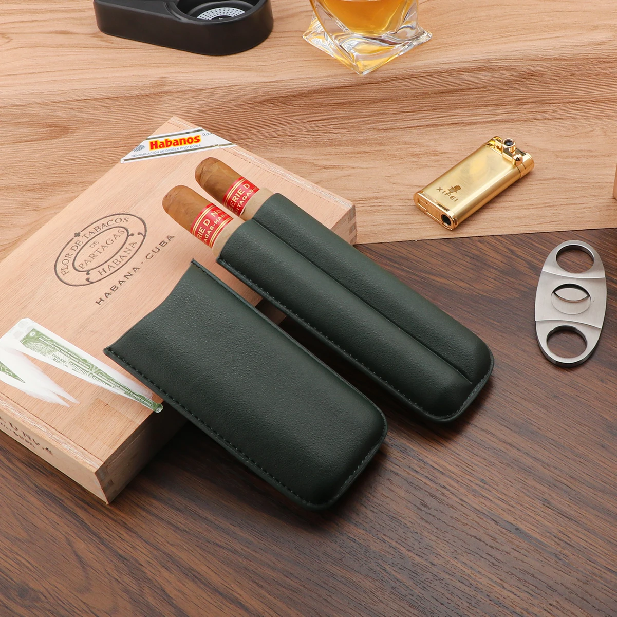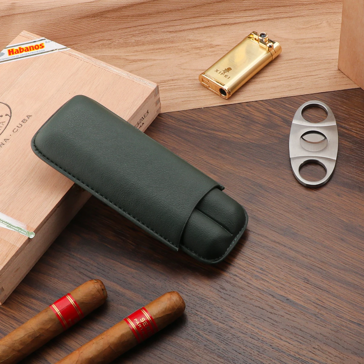 Xifei Leather 2 Slots Cigar Case Portable Green Humidor Box Travel Smoking Tools Cigarette Storage Accessories