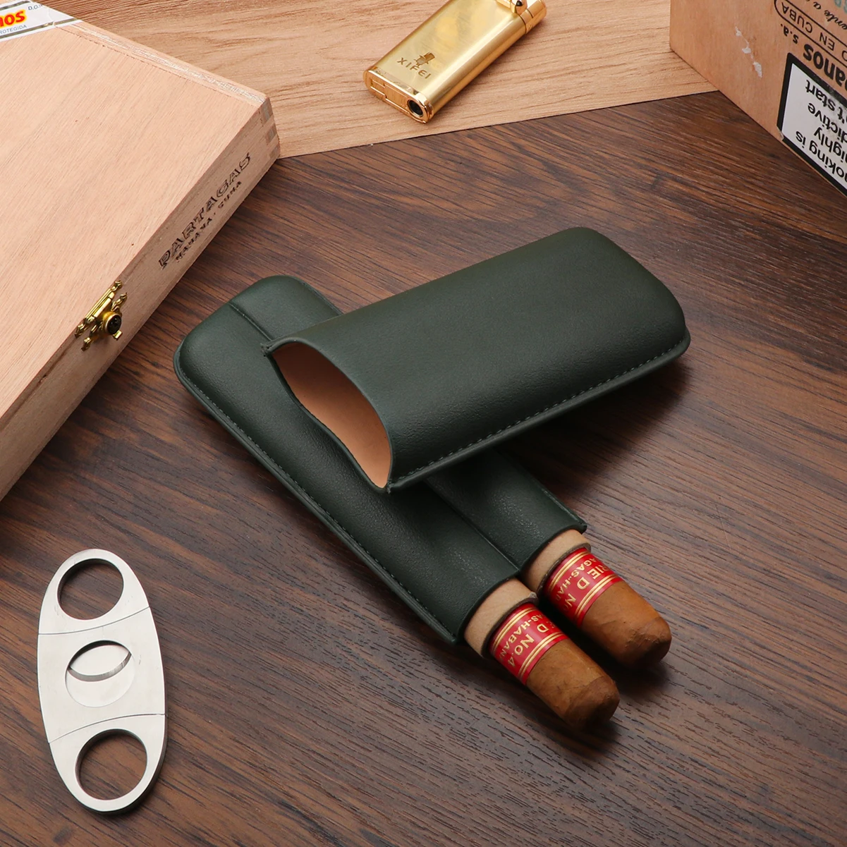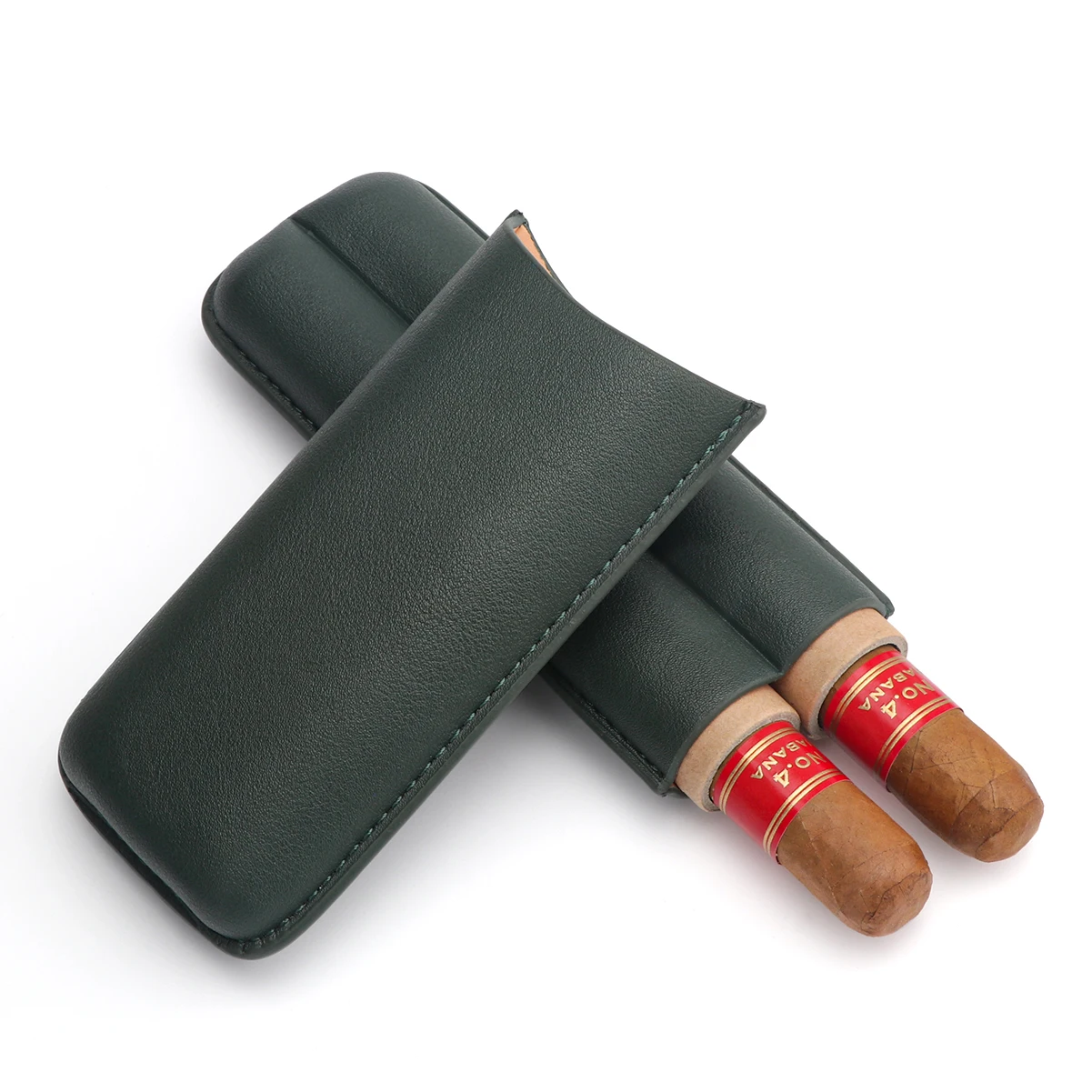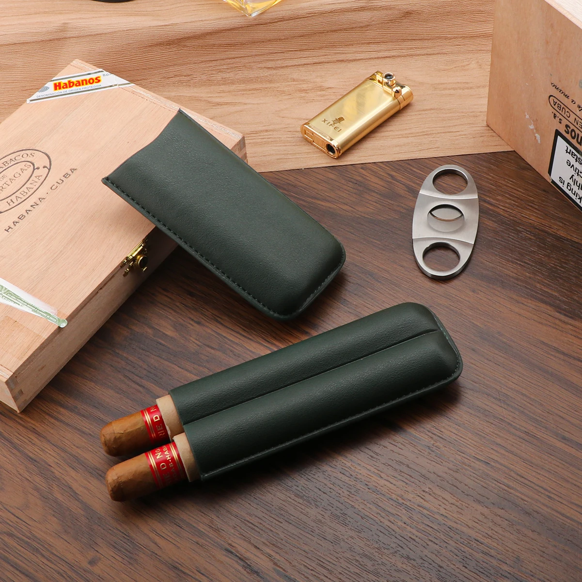 Xifei Leather 2 Slots Cigar Case Portable Green Humidor Box Travel Smoking Tools Cigarette Storage Accessories